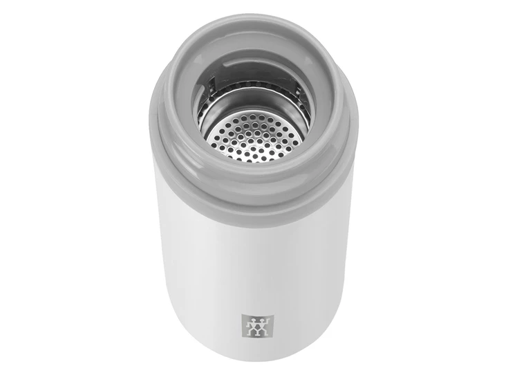 Vers fruit, theeblaadjes of verse gember stop je gewoon rechtstreeks in de witte Zwilling Thermo isoleerfles voor thee. Dankzij de ingebouwde zeefinzet kan je onbelemmerd genieten van jouw favoriete drankje, want het fruit of de theebladeren blijven gewoon netjes in de fles. De reisbeker heeft een inhoud van 420 ml en is volledig lekvrij. Thee blijft tot 7 uur warm en koude dranken zijn zelfs na 10 uur nog steeds lekker fris.