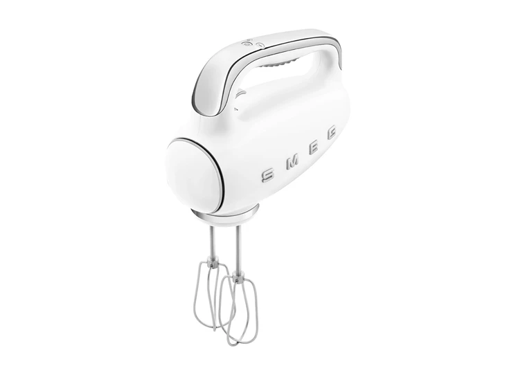 De witte handmixer van Smeg is geschikt voor een tal van zoete en hartige bereidingen. Hij is uitgerust met drie verschillende soorten roestvrijstalen gardes om de beste resultaten te garanderen bij het maken van elk deeg.