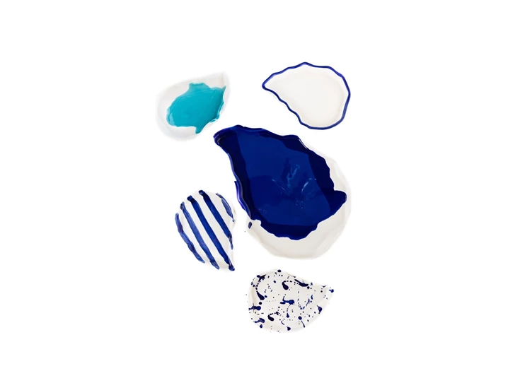 Val Pottery Foolish oester / tapas set van 5: schaal + 4 bordjes blauw mix