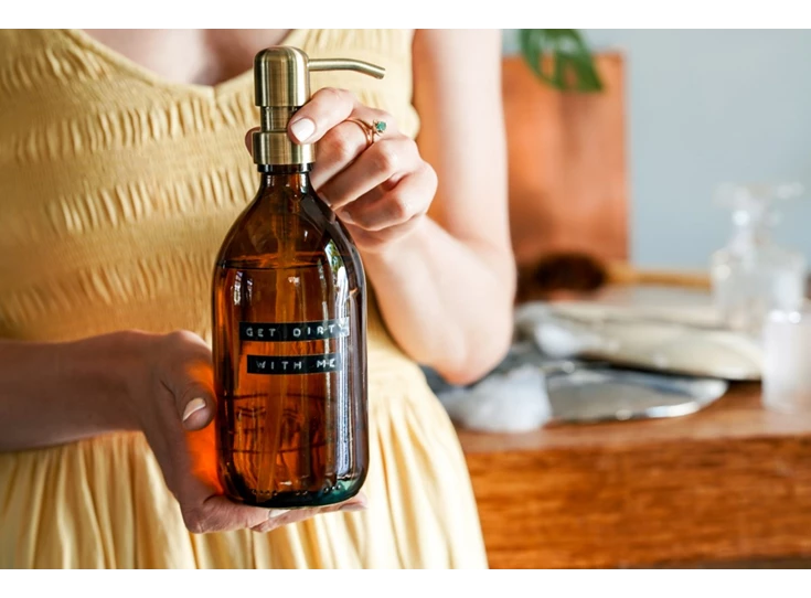 Wellmark handzeep 1000ml amber glas / brass - 'may all your troubles be bubbles'