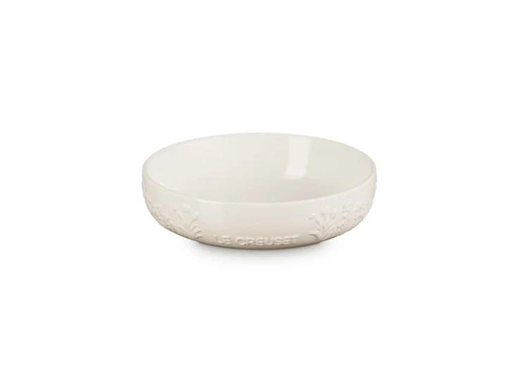 Het Jardin diepe bord van Le Creuset in de zachte tint meringue combineert elegantie met functionaliteit voor alledaags gebruik en speciale gelegenheden. Dit bord is vervaardigd uit duurzaam, hoogwaardig keramiek dat bestand is tegen afbrokkelen en krassen. De diepe vorm is ideaal voor het serveren van soepen, pasta's, salades en andere gerechten met saus. De subtiele kleur voegt een vleugje verfijning toe aan je tafelsetting. Net als de andere items in de Jardin collectie, straalt dit diepe bord een tijdloze charme uit die moeiteloos samengaat met ander servies.