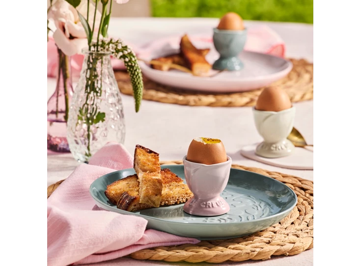 De Jardin eierdopjes van Le Creuset, uitgevoerd in de zachte kleur shell pink, brengen een vleugje lente op de ontbijttafel. Deze charmante set van twee eierdopjes is vervaardigd uit duurzaam, hoogwaardig aardewerk dat bestand is tegen afbrokkelen en krassen. Het elegante design is geïnspireerd door de schoonheid van de tuin en voegt een subtiele, vrolijke noot toe aan je servies. De eierdopjes zijn perfect gevormd om eieren stevig vast te houden, zowel hard- als zachtgekookt. Bovendien zijn ze vaatwasserbestendig, wat het opruimen na het ontbijt eenvoudig maakt. Met hun delicate kleur en verfijnde uitstraling zijn de Jardin eierdopjes een ideale aanvulling op elke tafel.