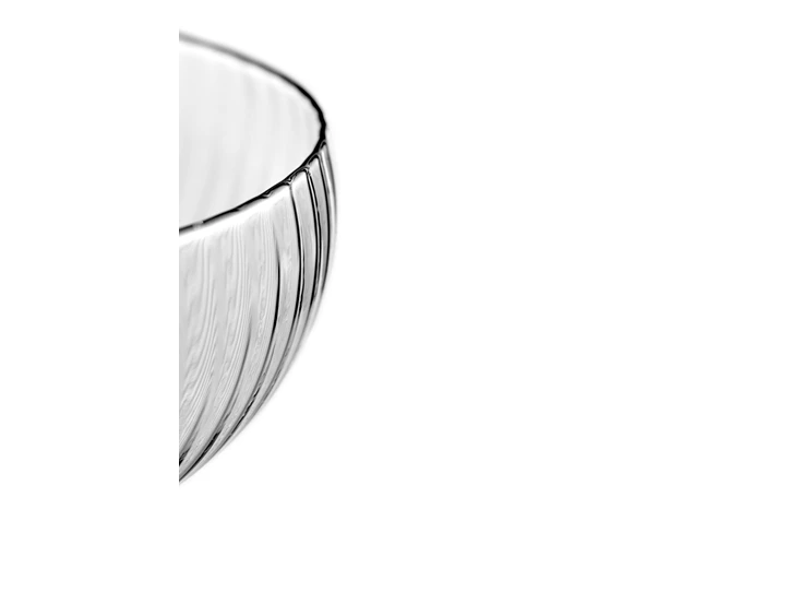 Naast de reeds beschikbare bordencollectie is er een professioneel koffie- en theeservies en een reeks fijn glaswerk. Van wijnglazen over champagnecoupes tot water- en cocktailglazen. Enkelen daarvan in een speciale uitgave in geribbeld glas, waarbij de tere plooien als de baleinen van een walvis stilaan vervagen naar de rand van het glas toe.