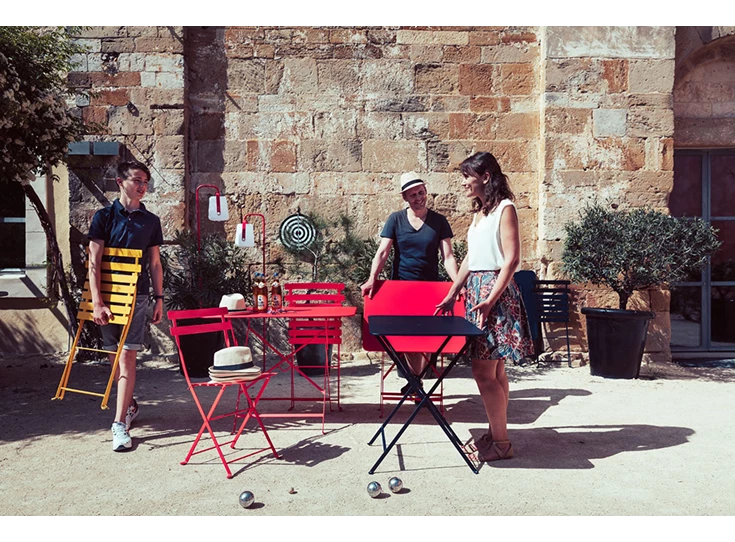 De Bistro tafel is uiterst handig en charmant. Het meubel straalt de authentieke en harmonieuze sfeer van de zonnige en drukke terrassen van Parijs uit. De Fermob Bistro reeks is vervaardigd uit sterk metaal en heeft een speciale UV-werende coating. Hierdoor verkleuren de meubelen niet en kan je ze met een gerust hart buiten laten staan. Bovendien klappen de meubelen toe, super handig als je ze wil verplaatsen of wil opbergen. Ideaal dus voor kleine terrassen en balkons.
