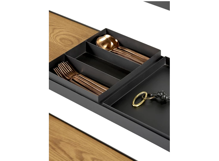 Het James rek van Serax is ontworpen door Marie Michielssen. Vooral voor kleinere ruimtes en appartementen met relatief weinig plaats is het rek een handige toevoeging. Uitgevoerd in een combinatie van staal en houtfineer.