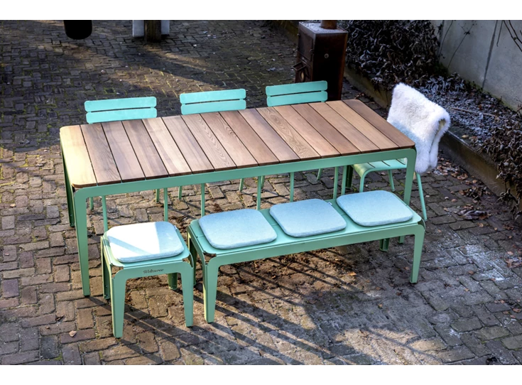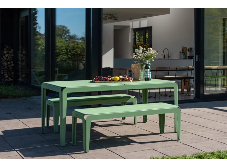 Met de Bended Table van Weltevree in kleur lichtgroen creëer je een gezellig plek om dagelijks te dineren of even te relaxen. De aluminiumplaten zijn in 45 graden gebogen en zorgen voor een sterke en flexibele constructie waarmee de tafel zich aan iedere ondergrond aanpast. Zo hoef je je nooit zorgen te maken dat de tafel zou beginnen wiebelen.
