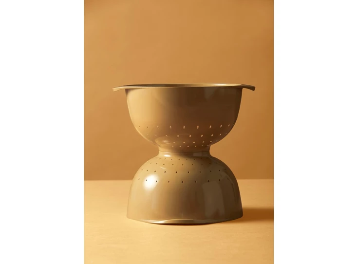 Het Margrethe vergiet in kleur curry van Rosti is ideaal voor het afgieten van pasta, aardappelen of groenten. Hij is hittebestendig tot 70°C en vaatwasserbestendig.