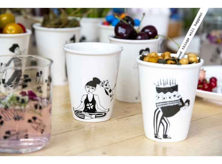 Porseleinen beker met illustratie '2 willies' van Helen B. Leuk om te geven én om te krijgen.