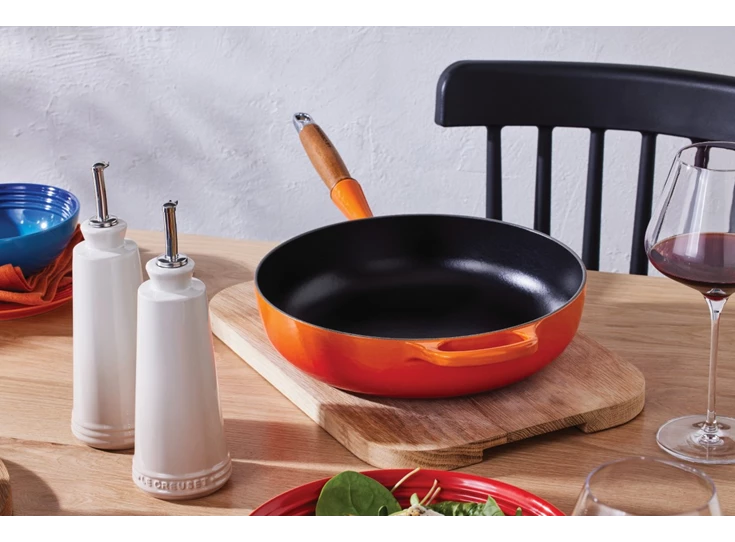 Deze olie- en azijnset in kleur meringue van Le Creuset mag niet ontbreken op tafel. Één van de flessen beschikt over het Le Creuset logo en de andere enkel over de iconische Le Creuset ringen, zo hou je de flessen makkelijk uit elkaar.