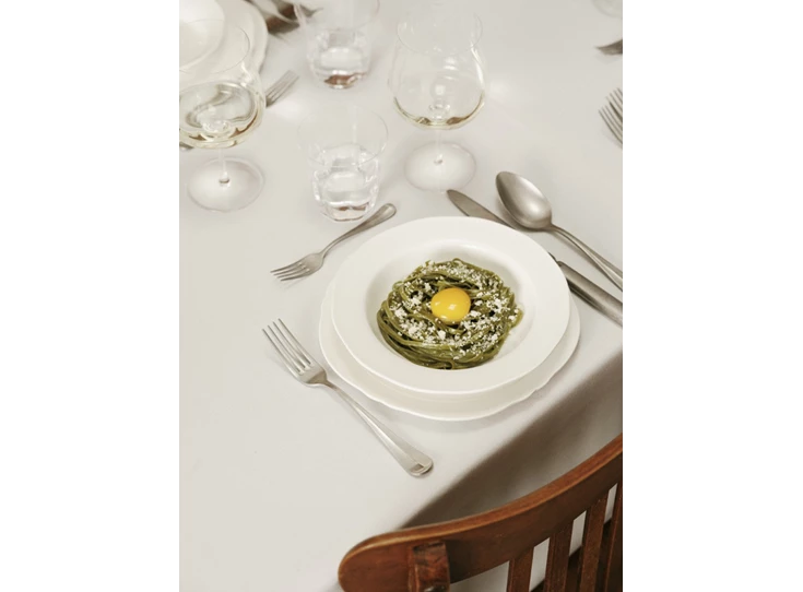 Dit diep bord maakt deel uit van de Silhouette collectie van Sergio Herman voor Serax. Het servies is een eerbetoon aan de porseleinen borden die hij gebruikte in zijn restaurant aan het begin van zijn carrière, maar dan in een modern jasje gestoken. De inspiratie voor de contouren van de Silhouette collectie komt rechtstreeks uit de tijdloze schoonheid van natuurlijke fenomenen, zoals de zachte vormen van wolken en de delicate lijnen van bloemblaadjes. Dit creëert een serene en tegelijkertijd krachtige aanwezigheid op elke tafel. De collectie nodigt uit tot een culinaire beleving waarbij de focus ligt op de puurheid van het eten, gepresenteerd in een ingetogen doch indrukwekkende setting.