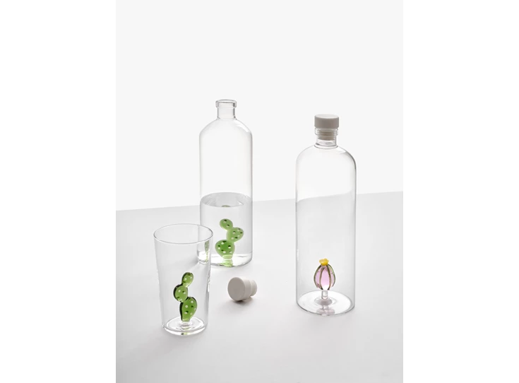 De Desert Plant karaf van Ichendorf Milano is een uniek en speels object dat de schoonheid van de woestijn naar je tafel brengt. De karaf is versierd met een cactus die telescopisch vergroot wanneer je er water in giet. Het heldere borosilicaatglas contrasteert prachtig met de groene cactus, waardoor een verrassend visueel effect ontstaat. Deze karaf is niet alleen functioneel voor het serveren van water of andere dranken, maar is ook een origineel decoratief element dat gesprekken op gang brengt.