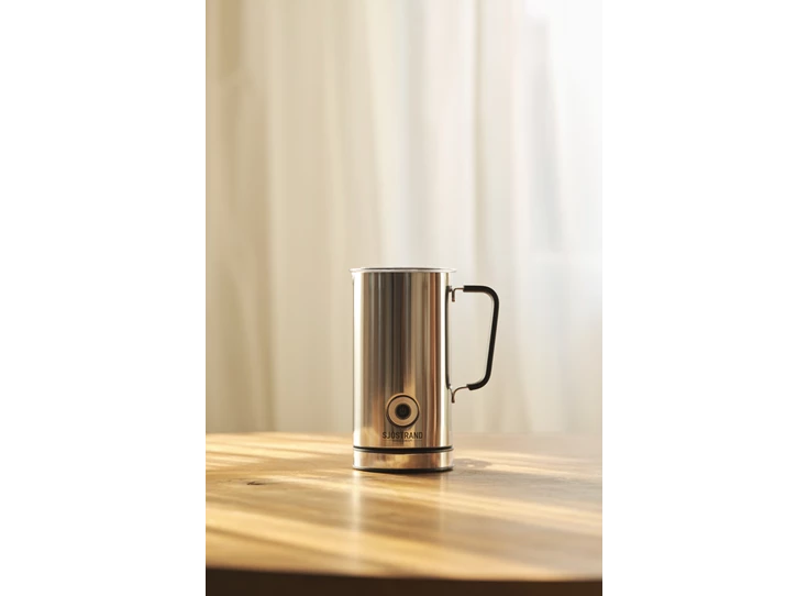 De roestvrijstalen melkopschuimer van Sjöstrand is een stijlvol en functioneel apparaat dat perfect past bij The Original espressomachine. Met deze melkopschuimer kun je thuis genieten van professioneel melkschuim voor je favoriete koffiedranken, zoals cappuccino's en lattes. De melkopschuimer is gemaakt van hoogwaardige materialen en heeft een elegant design dat elke keuken verrijkt. De slimme technologie zorgt ervoor dat de melk moeiteloos en automatisch wordt opgeschuimd, zonder dat je erbij hoeft te blijven. Daarnaast is de melkopschuimer eenvoudig te reinigen, waardoor hij een praktische toevoeging is aan je koffieroutine. Met de melkopschuimer van Sjöstrand maak je van elke koffiemoment een luxueuze ervaring.