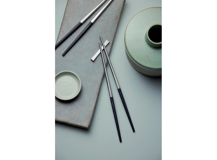 De Focus de Luxe chopsticks met houder van Gense zijn een verfijnde aanvulling voor elke tafel die Aziatisch geïnspireerde gerechten serveert. Deze elegante eetstokjes, vervaardigd uit hoogwaardig roestvrij staal, bieden een comfortabele grip en een tijdloze uitstraling. De bijbehorende houder zorgt ervoor dat de stokjes hygiënisch en stijlvol gepresenteerd worden, terwijl het tafelblad schoon blijft. Het minimalistische en slanke design past perfect bij moderne eetervaringen en voegt een vleugje luxe toe. Met de Focus de Luxe chopsticks geniet je van een authentieke en elegante manier om te dineren.